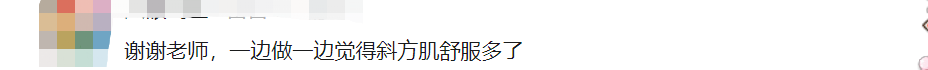 网友:谢谢老师,一边做一边觉得斜方肌舒服多了。