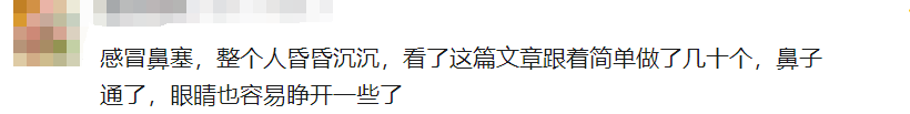网友:感冒鼻塞,整个人昏昏沉沉,看了这篇文章跟着简单做了几十个,鼻子通了,眼睛也容易睁开一些了。