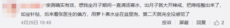 网友:亲测确实有效,想我坐月子期间一直清汤寡水,出月子就大开辣戒,把痔疮整出来了,如坐针毡,后来看张医生的偏方,用萝卜水坐在盆里泡,第二天就完全没感觉了。