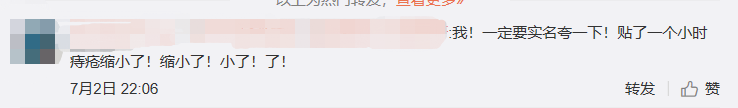 网友:我!一定要实名夸一下!贴了一个小时痔疮缩小了!缩小了!小了!了!