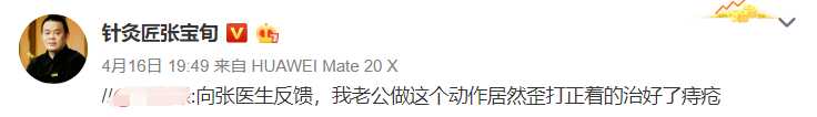 网友:向张医生反馈,我老公做这个动作,居然歪打正着的治好了痔疮。