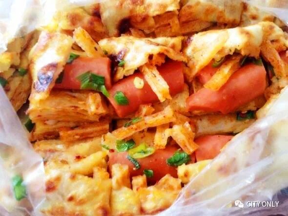 这是当地朋友推荐的,可能在鸡西长大的小孩子在读书的上学的时期都会在校门口的小摊子上吃到这口儿,淳朴的阿姨会问你要不要多加蛋加火腿肠儿。而加辣则是常态了。油而不腻,香气扑鼻,比煎饼果子更香。貌似鸡蛋饼的口感会比烤冷面更好。据说这烤冷面就是起源于密山市的噢!