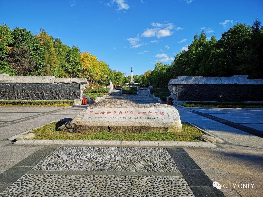 在虎头要塞西北侧的中猛虎山内,占地广阔的纪念园是为了纪念“二战”的终结所建。穿过茂密的树林,路北繁多的雕塑回顾了“二战”在中国以及其他战区的进程。最北侧是高大的“二战”终结地纪念碑,碑顶有和平鸽围绕的自由女神,基座的滚滚车轮则象征了历史的不断前行。