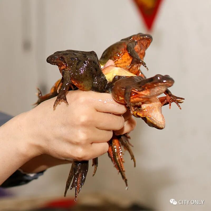 北方林区特有的一种林蛙,黑龙江当地叫“蛤什蟆子”,也有叫红肚田鸡、雪蛤。所谓的保健品“雪蛤油”就是林蛙的油。在物资匮乏的年代,当地人会利用一切自然资源来提高生存质量,这森林里的林蛙因生存环境良好而被大量捕抓,煎炒烹炸炖...被活活烤干取油。还传说受精待产的母林蛙富含雌激素,什么滋阴补肾,延缓衰老就都整上台面了。林蛙在未产卵的情况下捕捉,使得此物种短期内锐减,而破坏森林的生态平衡。而且制作雪蛤油的过程和吃这种野味实属残忍,不建议体验。