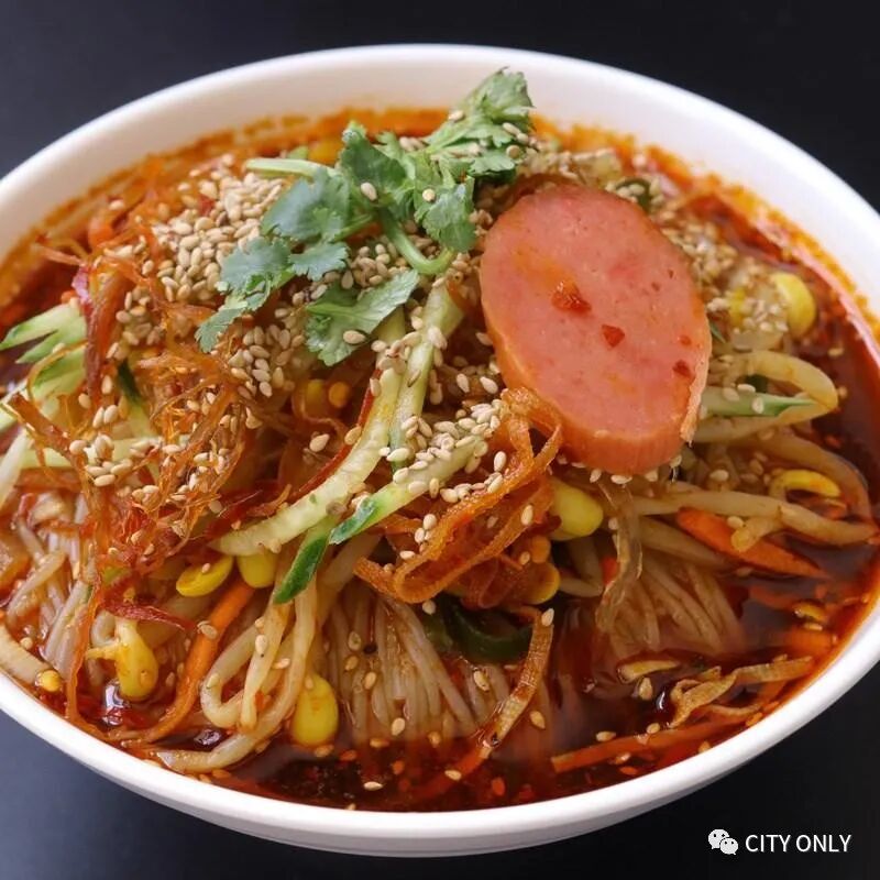 (三姐妹冷面馆的冷面 料足 辣椒油一层)▼