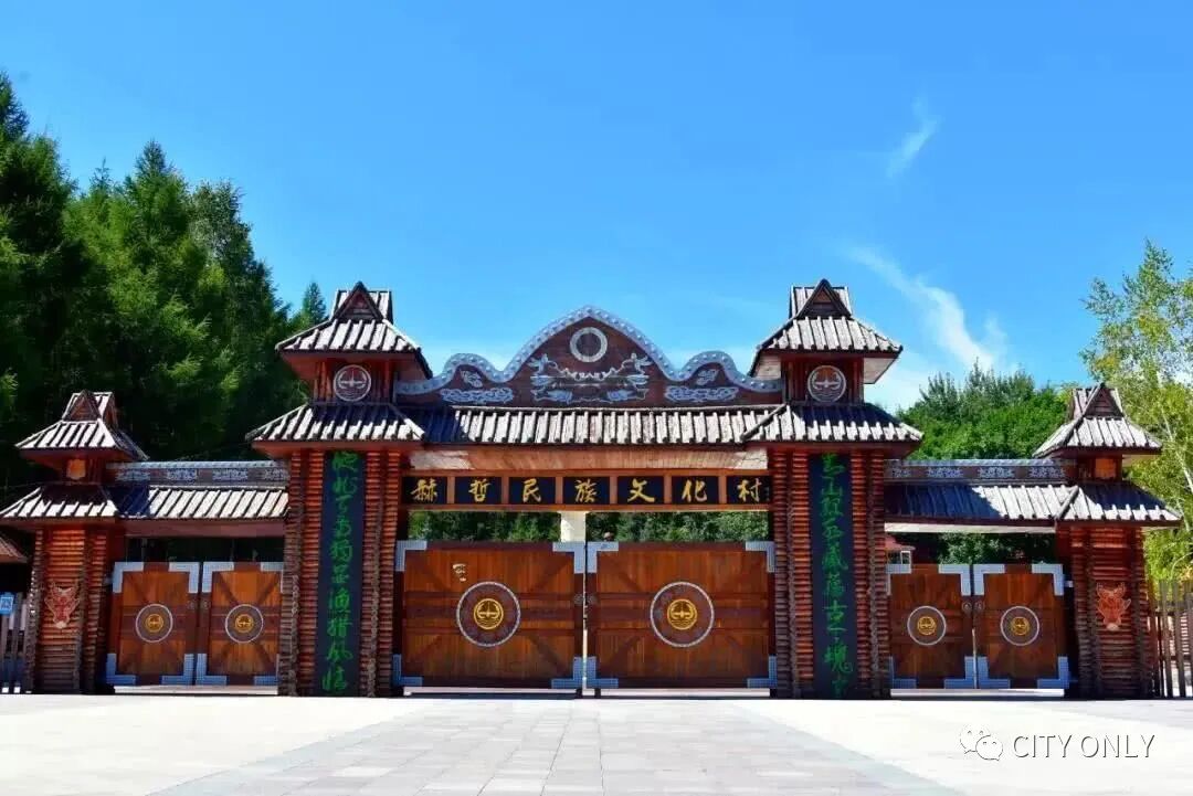 民族文化村的主体是入口的赫哲展览馆,这里能看到赫哲族的桦树皮船、鱼皮服装、以及渔猎文化和婚姻风俗。这个5300多人的民族历史上曾受到了满族人宗教、节日、习俗的莫大影响。