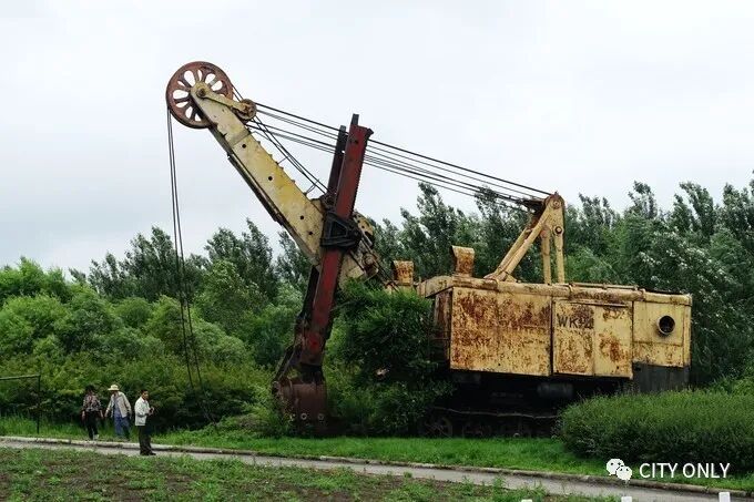 园区大门附近有巨大的抽象采矿雕塑,浓缩了煤炭工业科技发展的历程。经过东北侧的浮雕墙,穿过矿区铁路,便能看到巨大而壮观的露天煤矿。这个全长3.1公里、坑深为130米的煤矿目前仍然处于开采的状态中。