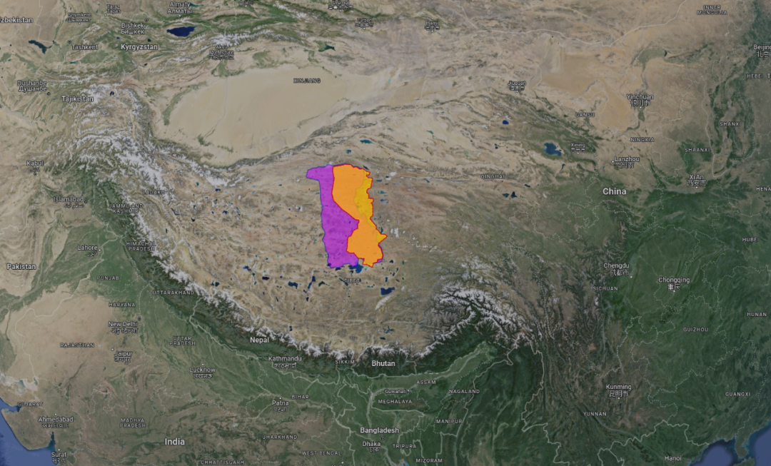 (双湖县在藏地的两版行政区域划分/紫色的为最新版区域范围图)▼