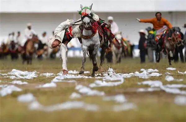 格萨尔赛马场是那曲县城为数不多可供游客现场体验的场所。每年8月,当地官方会举办持续5天的那曲赛马节,参赛选手会在此角逐出最终名次;观众可在圆形白色的格萨尔赛马场看台上欣赏到竞技盛况。此外,在赛马节期间,那曲地区还会进行射箭、打靶、摔跤、拔河、抬石头、拾哈达等传统比赛项目;民俗与歌舞表演也是不可错过的活动。