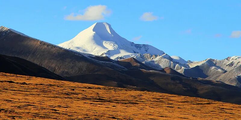 藏地二十五座最高的山峰之中,位于藏北高原的桑丹康桑雪山便是其中的一座。当地人认为,桑丹康桑为二十五位仙境居士之一,依附于此山的神明被称为“夜叉岗布桑布”,是一位法力无边的佛法保护神,周围的众多峰峦和湖泊都是其侍从。站在桑丹康桑南侧望去,雪山形似一位身着银色战甲的勇士,永远地守护着广袤的羌塘草原。随着季节的变换,桑丹康桑会呈现出不同的色彩;青藏公路从雪山脚下通过,大多数旅行者都会为其驻足,欣赏这自然赐予的美景。