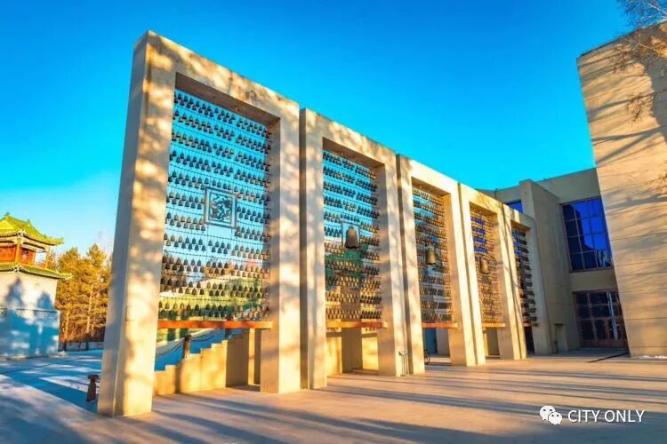 进门东侧的魁星阁,是瑷珲古城众多庙宇中唯一幸免于光绪二十六年(1900年)“庚子俄难”战火的古建筑,当然现在已经翻新修缮啦。三层的阁楼供奉着凶神恶煞的魁星。展览馆台阶左侧有骑射浮雕,右侧簌簌作响的1858只铁铃阵警示后人“莫忘国耻”。