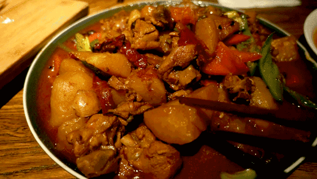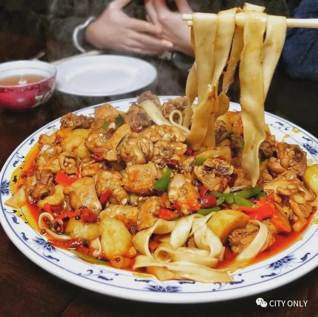 吃大盘鸡最好到这里了,整条街都是经营这道菜的饭馆,每家的味道、价格都差不太多,最好结伴来享用,因为...这里大盘鸡没有小份、中份,都是一只大大的土鸡,一大份加上土豆和面条的分量...请掂量一下自己的胃先。