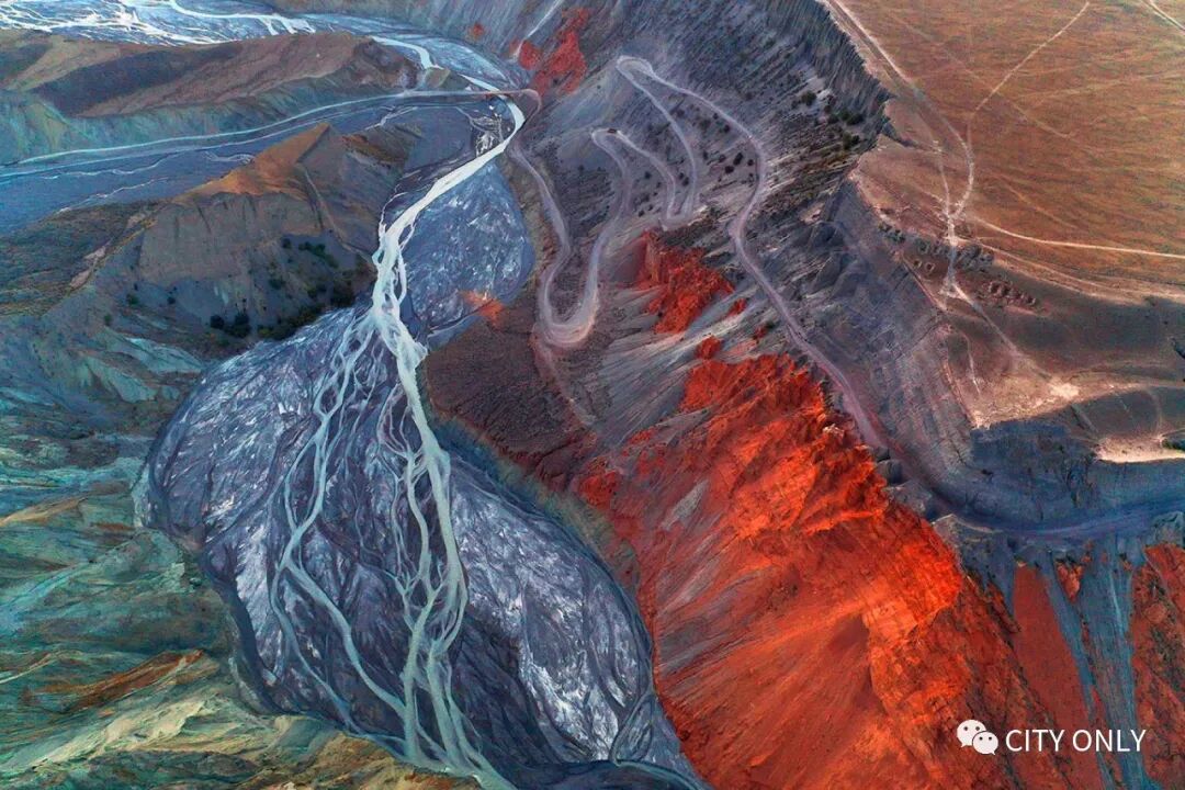 也叫红山大峡谷,发源于依连哈比尔尕山冰川的安集海河,在天山北坡下形成大规模的冲积扇。站在峡谷上方俯瞰,西岸为褶皱状的红层地貌,东岸为似被千刀万剐后的灰色垂直节理状山体,上方阶梯状的层层“台面”是地壳运动形成的河流阶地,安集海河在谷底如凌乱的发辫缠绵。峡谷边的断崖几成垂直状,专注景色的同时也要十分注意脚下的危险。