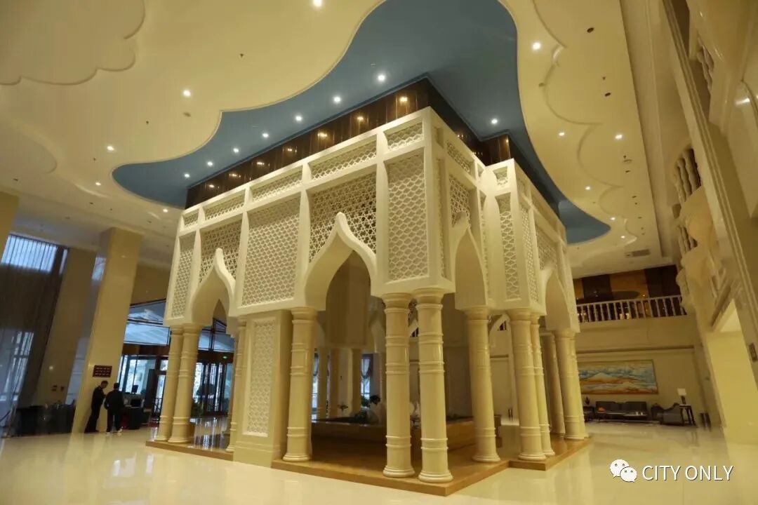 (伊斯兰风格的温泉酒店大堂/冬季的沙湾温泉冰火两重天)▼