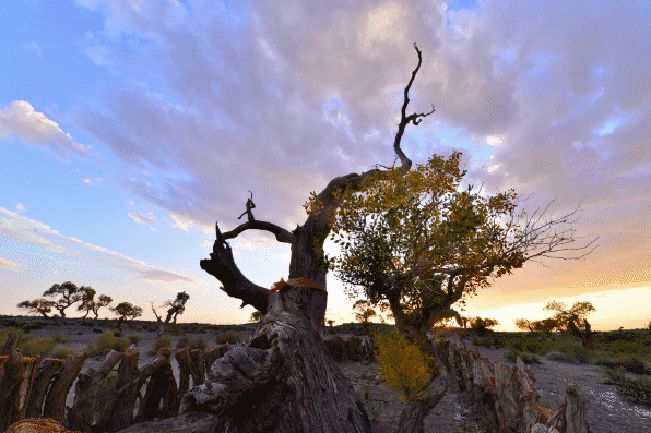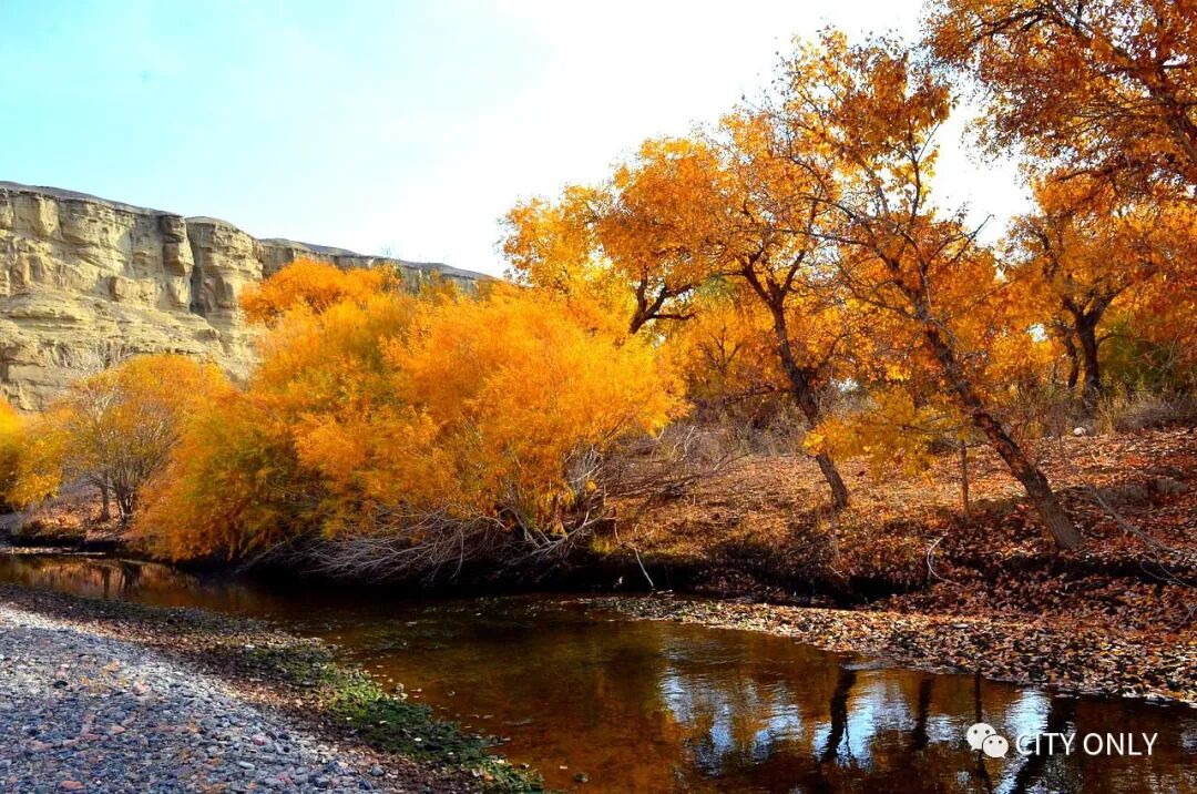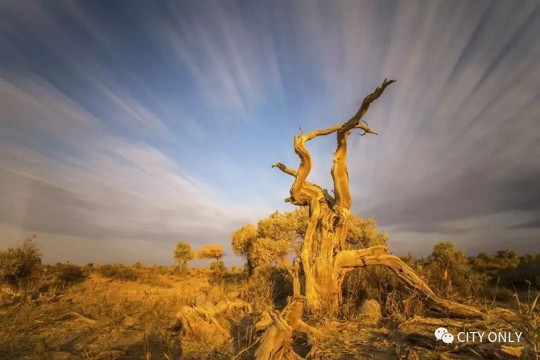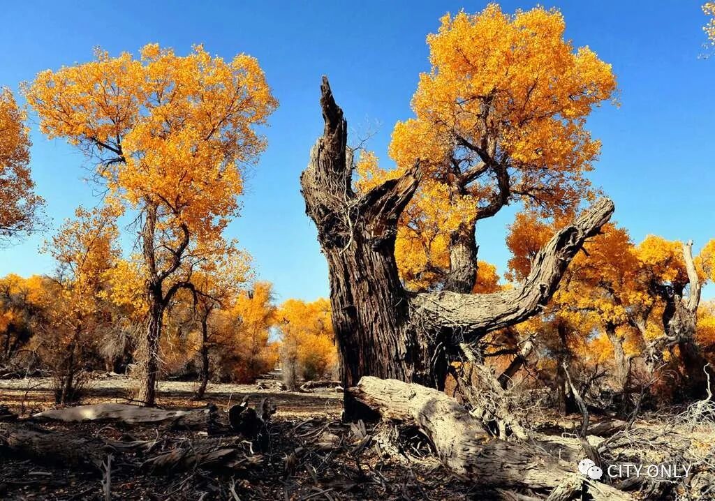 从乌尔禾沿着G217国道往克拉玛依方向行驶约20分钟,公路两侧会出现大片的胡杨林。留意一下西侧会有个通往白杨沟谷地的指示牌,一路开进去,里面的胡杨林更上镜,既有枝干弯曲、形如枯槁的不朽老胡杨,也有树到中年仍然枝繁叶茂的壮年胡杨。乌尔禾很多宣传片上的胡杨都是在这里拍摄的。