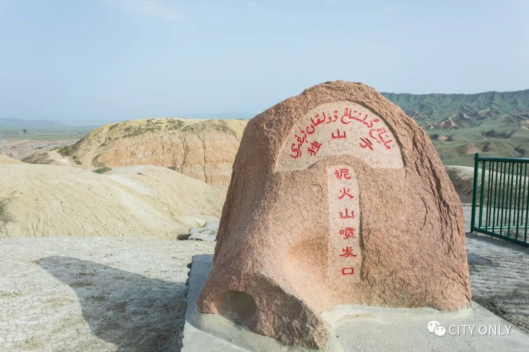 和乌苏泥火山一样,这也是一个个往外翻泡的小泥潭。最大的喷口直径约60厘米,高出地面约1米,泥浆呈灰绿色,略带有石油味。从山脚爬上山需半个小时左右,沿途经过独山子油田遗址,就是1909年新疆钻出第一口油井的位置,在纪念碑附近还有石油留下的黑色痕迹。山顶可以俯瞰整个独山子城区,风光不错。
