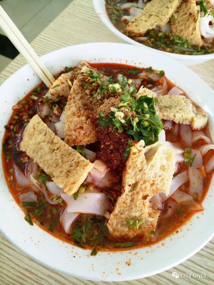 这家只做早午市生意,据说是30年+的老店。经营凉皮、擀面皮、牛筋面,各种作料一拌,红红的一大碗,看着食欲就大开。同样需要早点去吃,生意太好的时候很早就卖光。