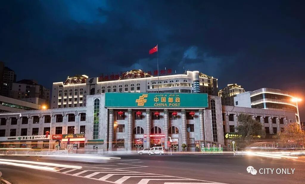 红山邮政大楼,扬子江路4号。建于20世纪50年代,是当时乌市的标志性建筑之一。大楼正面的6根大立柱、拱形窗框都颇具欧式风格。