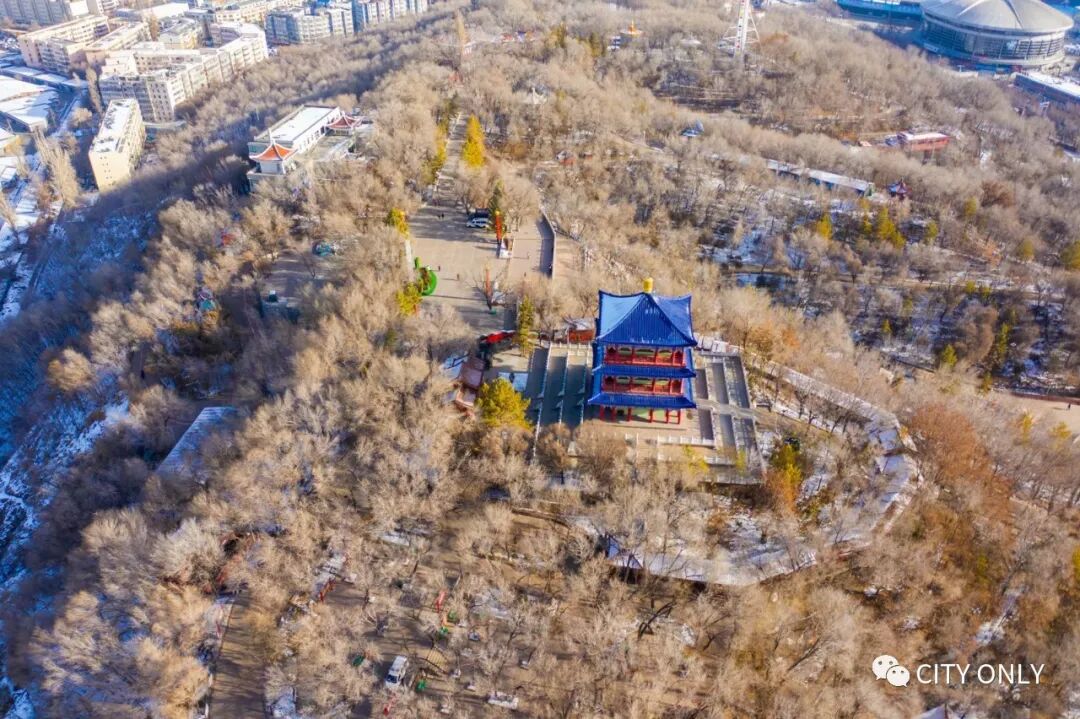 绿意盎然的公园是当地人休闲登高的好去处。红山曾经是乌鲁木齐的地标和至高点,海拔910米,西端断崖呈赭红色。峭壁之上矗立着九层高的宝塔,建于1788年,至今完好,为乌鲁木齐的标志和象征。塔下有一座林则徐纪念石像,塔对面则是高耸的远眺楼,登高能欣赏到市区高楼林立、车水马龙的繁华景象。红山在清代曾有古庙群,很可惜在1933年因战火焚毁,仅存大佛寺山门一座。现在公园东北处的大佛寺为新建的,唯有山门为古建筑原样搬迁。
