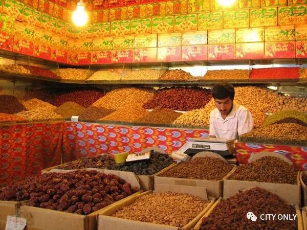 市场内有百余家店铺,红枣、葡萄干等干果普遍比大巴扎价格便宜,大多数店家都可以代发快递。