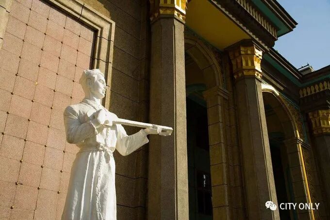 人民剧场,建中路2号。同样宏伟的建筑,20世纪50年代苏联援建的项目,到现在还保存着原汁原味的苏式风格和民族特色,2013年被列为全国重点文物保护单位。