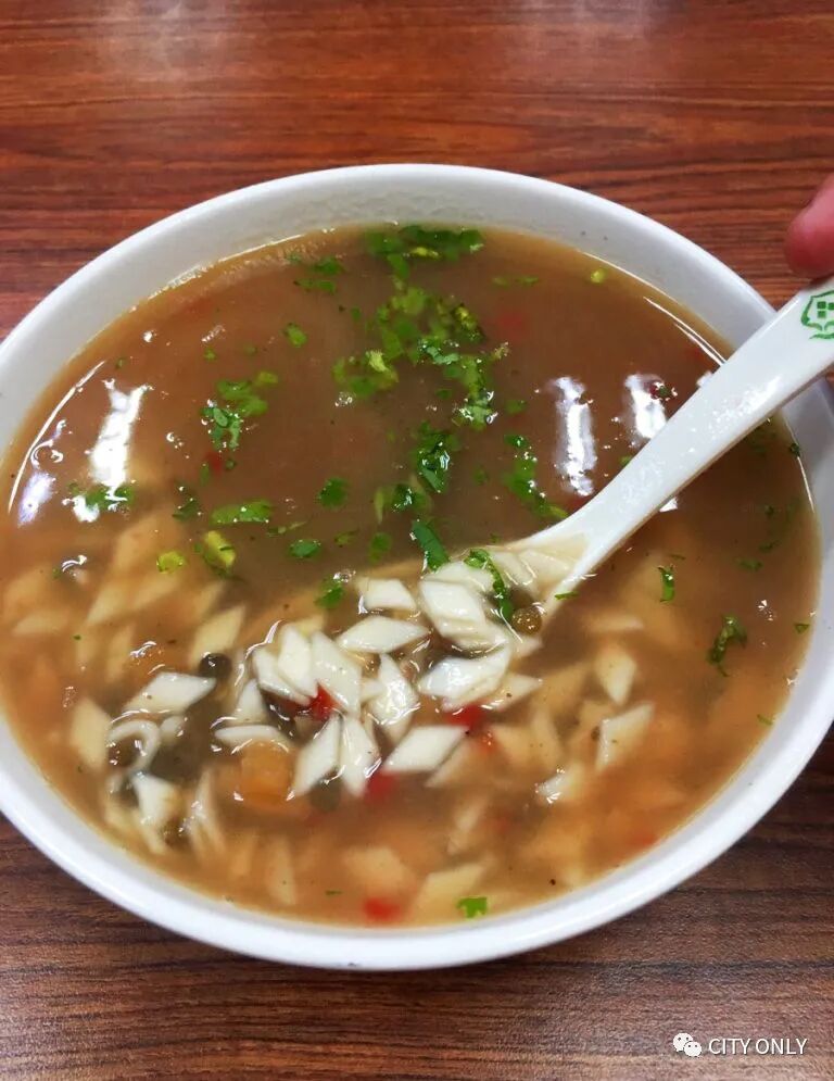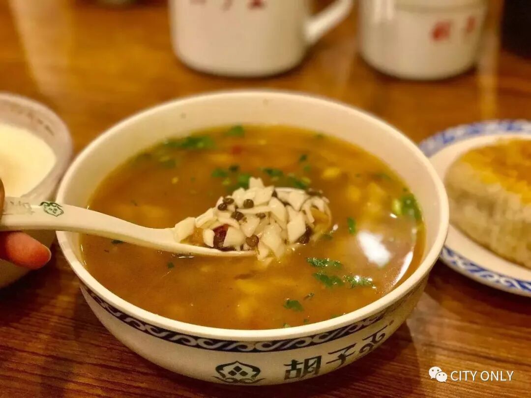 面旗子是一种传统的民间小吃,用刀将大圆饼划碎成小旗子的形状,像下面条一样煮着吃。这个胡子王扁豆面旗子有多家分店,价格实惠,汤头酸酸的,很是开胃。