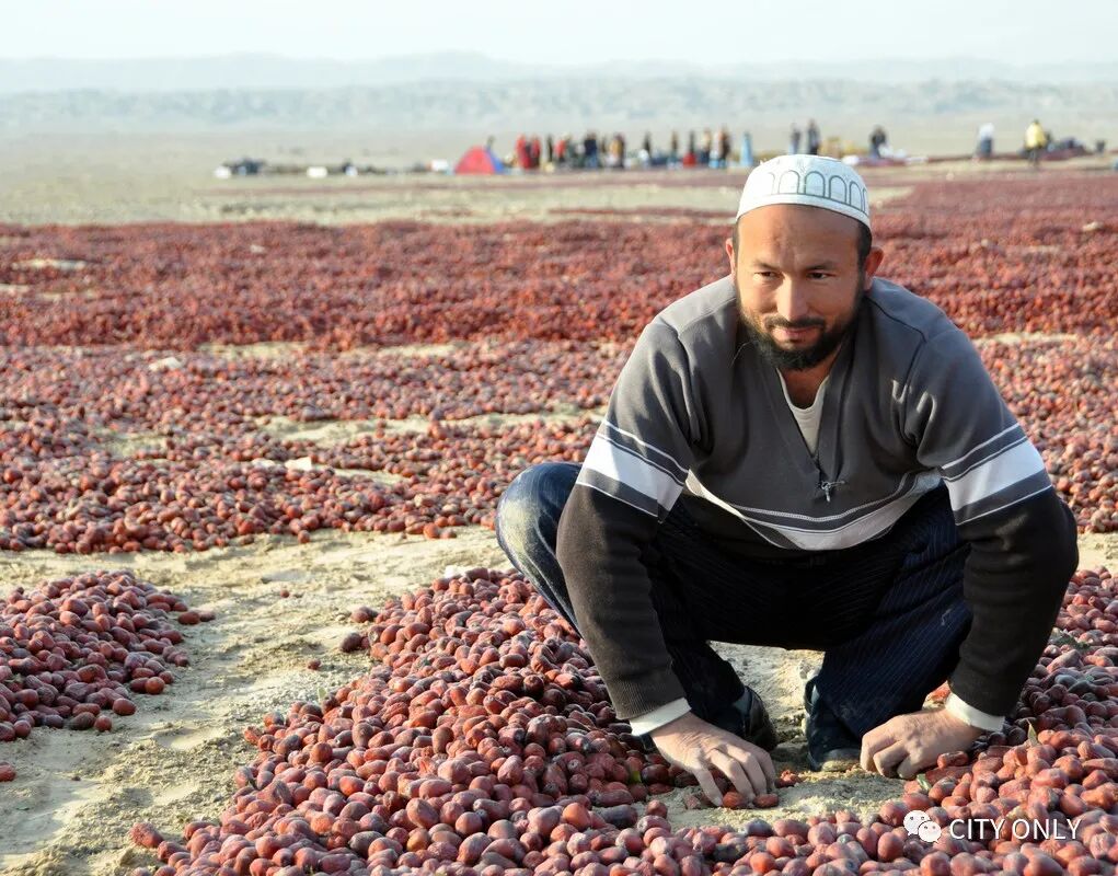 南疆和田的枣子有很多不同的品种,红枣和灰枣比较知名。与其它地区的红枣相比,和田枣颗粒饱满、果肉厚实、皮薄核小、味甜甘醇,每一颗都是自然精华的结晶。和田地区的光照时间长,早晚温差大,碱性沙质土壤和富含矿物质的昆仑山冰川雪水,造就了独特的地理特征,让这里出产的大枣品质更高。到和田吾宗肖乡塔西力克村,会遇到大片的枣田,一颗枣子会有鸡蛋那么大,尝试一下,带一些给家人朋友补补。