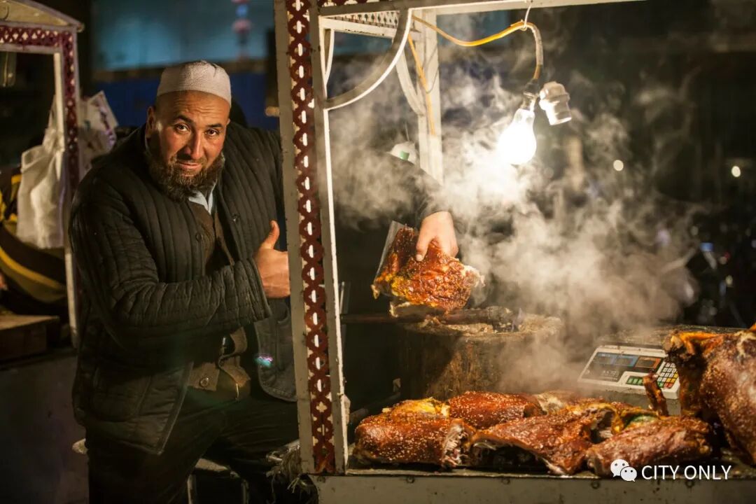 (和田夜市/清真麻辣烫/卖羊排的维吾尔大叔)▼