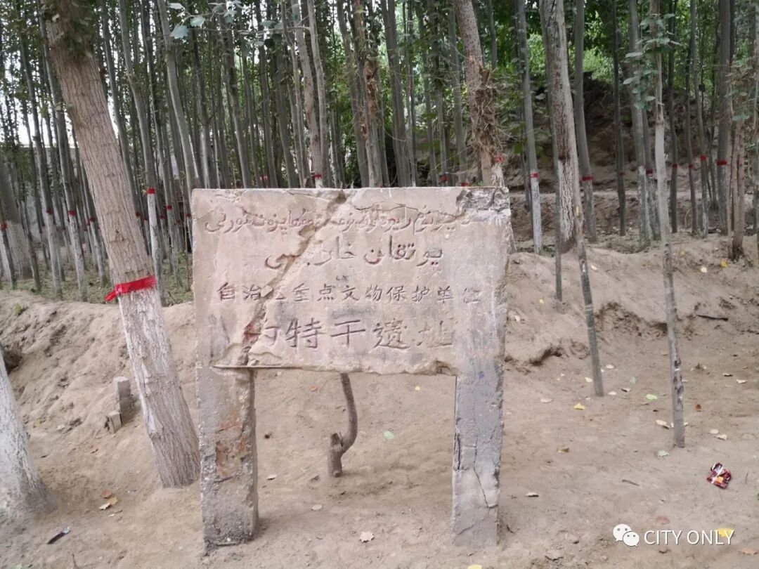 自汉朝至唐代,于阗国始终是西域大国,位于巴格其镇艾拉曼村的约特干遗址,被认定为昔日于阗国的国都。20世纪初,探险家斯文·赫定、斯坦因、大谷光瑞等先后在约特干遗址发掘出鎏金铜佛头、精美的红陶雕塑品、古代钱币、基督教十字架等,物品年代包含从汉唐时期直至11世纪的喀喇汗王朝,都证明着曾经西域佛国的辉煌,而这些珍贵的文物大都流落海外。当旅行者到达约特干遗址时,也同样会感受到失望,如今的地表只有一块斑驳的指示牌,地表5米下的文化层大都被掩埋,只能看到村庄和耕地。