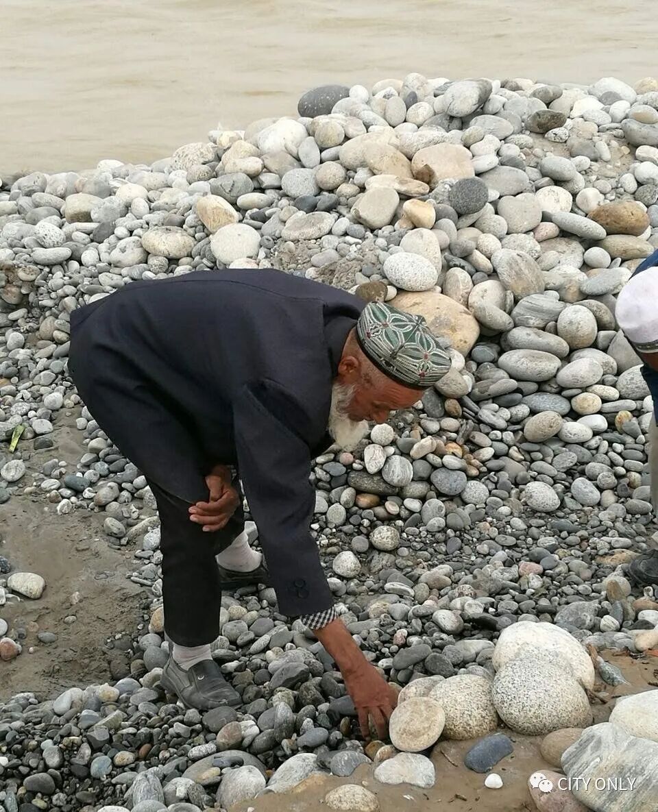《新唐书·西域传》中有记载着一段浪漫的文字,“有玉河,国人夜视月光盛处,必得美玉...”。捡玉石,是和田人的一种怡趣方式;而作为旅行者,在和田玉这条讳莫如深的产业链中大都会是一名弱小无助的消费者,与其动辄上千上万的玉石石料,不如去到玉龙喀什河边试试运气。每年夏季的雪山融水带着大量昆仑山上的原石玉料顺流而下;秋季水量减少后,经过大自然淘洗的籽玉会显露在河床上。但让你捡到宝玉的概率并不大,上游的开采场和无数大型挖掘机不会错过任何发财的机会。捡玉这事儿,找个夏季的黄昏或秋季的清晨,自驾带着茶炉去河边寻一丝安逸,顺便遛遛就好。