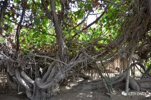 洛浦县杭桂乡吾斯唐吾其村29号的葡萄树王,150多岁的树龄。寻找它要问问当地人,葡萄树盘根错节的占据了大半个村民的院子,夏天的时候可以品尝到它丰硕的果实。