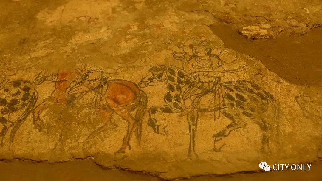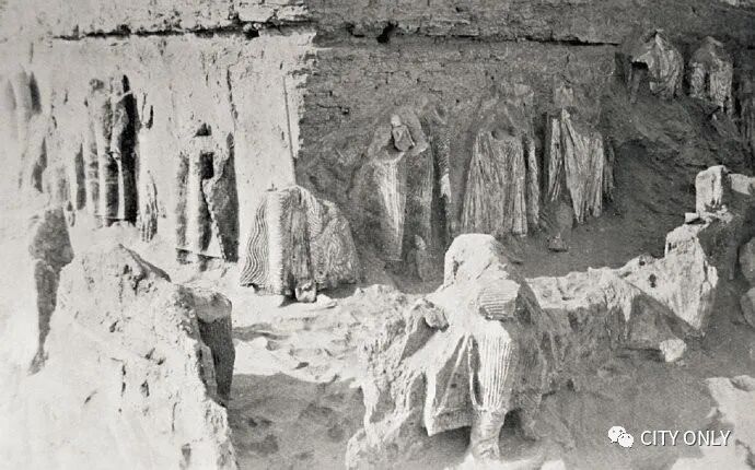 (丹丹乌里克遗址旧照/丹丹乌里克遗址现状/丹丹乌里克遗址出土唐代骑马人壁画)▼