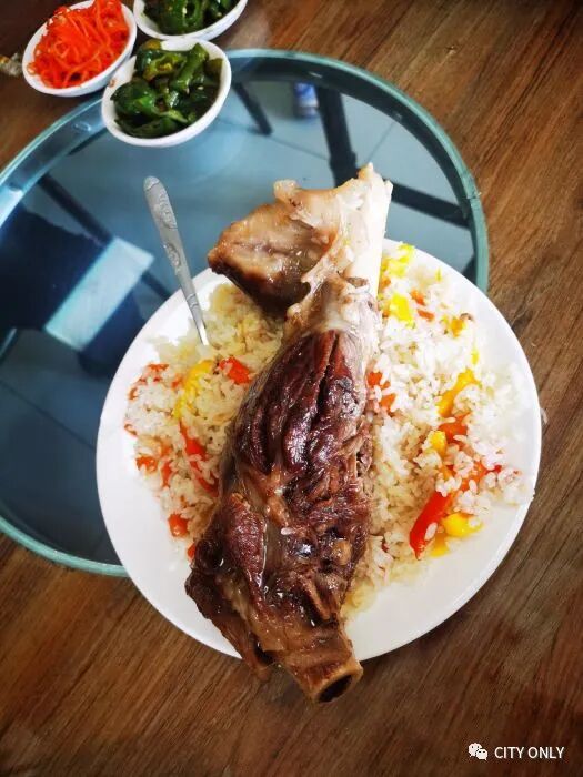 如果赶上午市饭口,会遇到附近的街坊邻居,店家会建议你来一份羊腱子抓饭,羊腿腱子肉和抓饭混合,配上些小菜,无限满足。