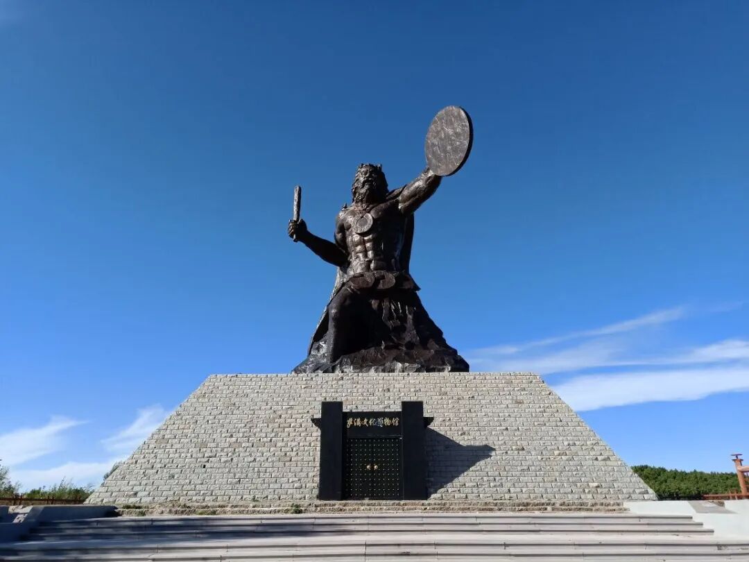 (达斡尔民族博物馆中正襟危坐的耶律阿保机雕像)▼