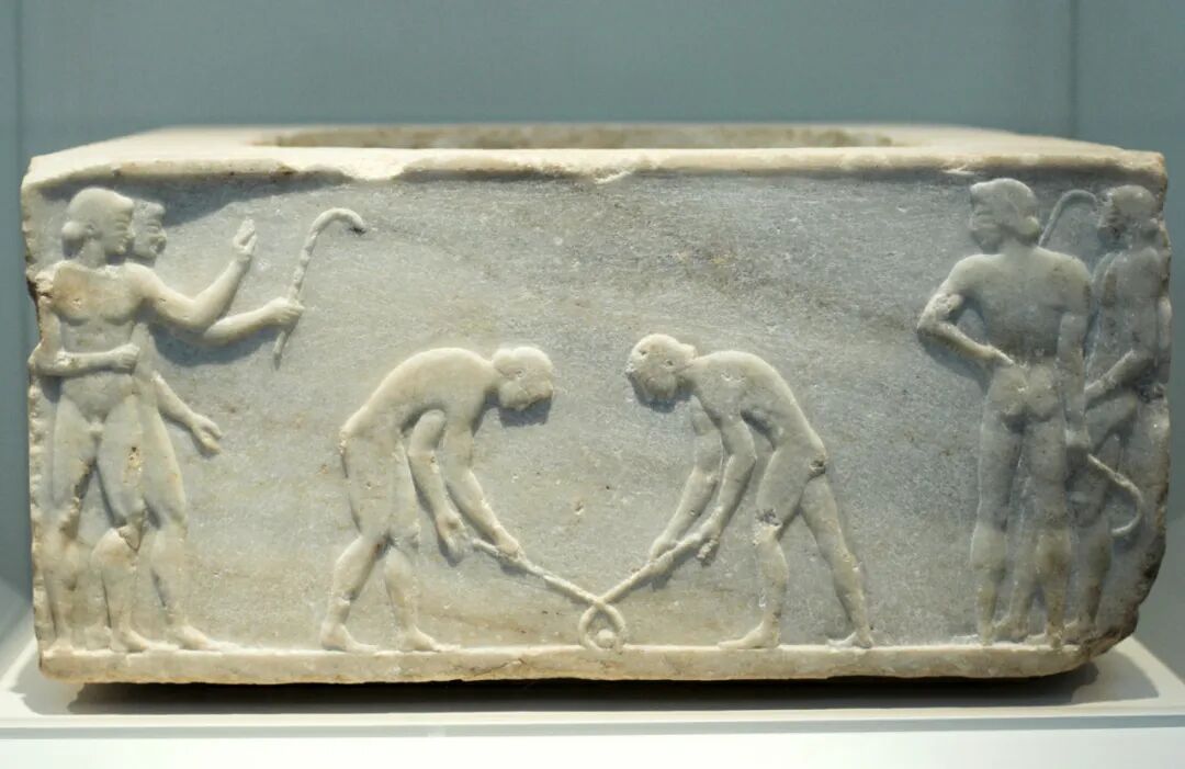 (公元前510年 希腊浮雕上描绘的曲棍球运动员)▼