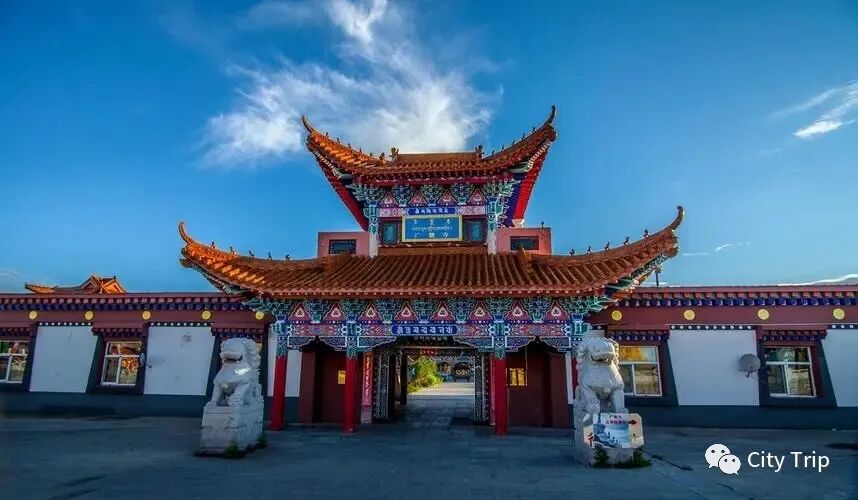 已有300多年历史的广惠寺以前叫做呼和庙,是一座藏传佛教格鲁派寺庙,旧庙在历史上的十年动荡期被毁。如今的红色寺庙殿中供奉着两尊释迦牟尼像,一尊是玉佛像,另一尊是佛陀12岁等身像(复刻拉萨大昭寺里的那尊);蒙古族藏传佛教信众们常来供奉香火,大殿两侧墙壁上绘有释迦牟尼的生平故事。