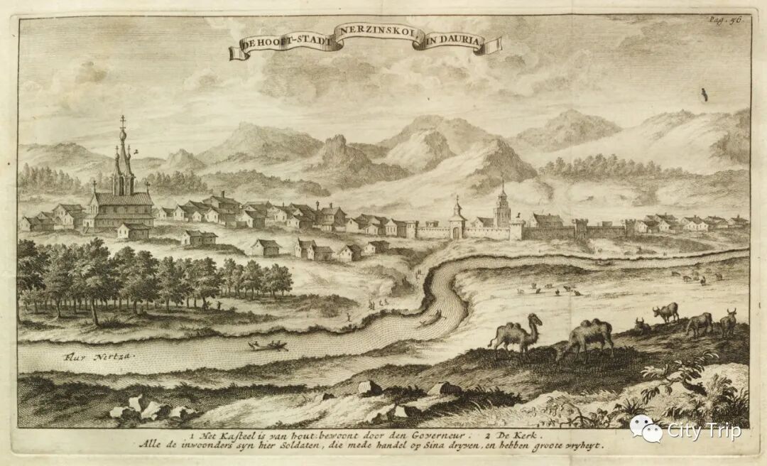 (德文版绘制的尼布楚/涅尔琴斯克银矿小镇)▼