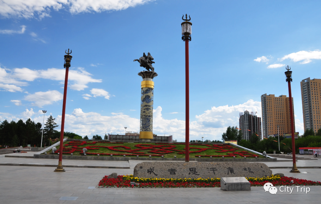 河东的成吉思汗广场有一座很特别的巴彦额尔敦敖包,组成敖包的9块大石头是从蒙古国布尔罕山而来。布尔罕山又被叫做肯特山,是成吉思汗的祖先孛儿帖·赤那生活的地方。传说少年铁木真被塔里忽台追杀,曾在肯特山里躲避。在成吉思汗成年之后,每次要做重大决定前,都会来布尔罕山朝拜长生天,以求庇护。因此,布尔罕山上的圣石便移了9块到呼伦贝尔,建立了蒙古族神圣的敖包。