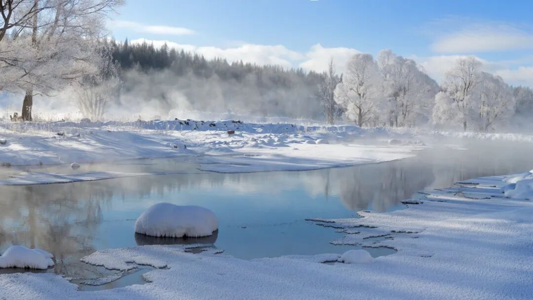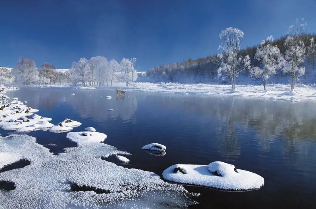 因地热影响,金江沟至三潭峡之间约20公里长的哈拉哈河段终年不冻。寒冬腊月,阿尔山地区冰天雪地,唯有这段河水潺潺流淌,生机盎然。冬季,河岸边挂满晶莹雾凇的枝头,以积雪作为背景,在晨曦或下午逆光时,最能拍出效果。