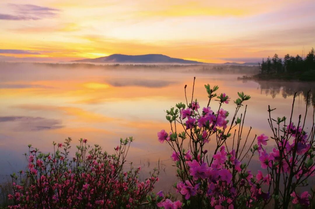 火山喷发熔岩堵塞哈拉哈河而形成的堰塞湖,湖畔周边长满了杜鹃花。春天杜鹃花绽放的时节最美,夏季晨曦时分湖面雾气蒸腾,仙气怡人。