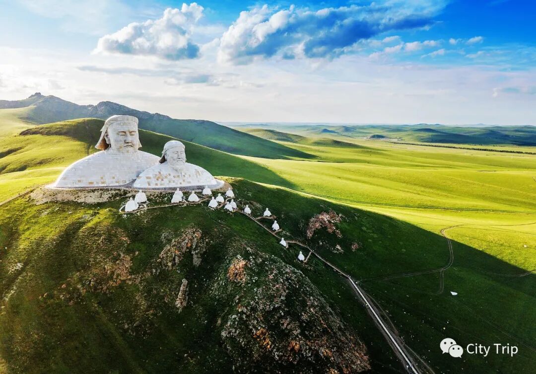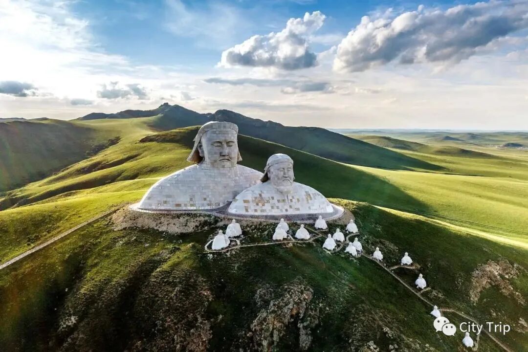 可汗山处在霍林郭勒市北郊,当地人又称为“观音山”,官方设置了一些关于成吉思汗/忽必烈的巨大雕塑,雄踞山顶,威严俯望着辽阔的科尔沁草原。除两位先祖之外的十六尊雕像,分别代表着元朝历代帝王。借“苍狼之路”逛完山间雕塑后,在山脚不远的村子里寻一户农家乐,谈好价格,品尝当地草原美食。