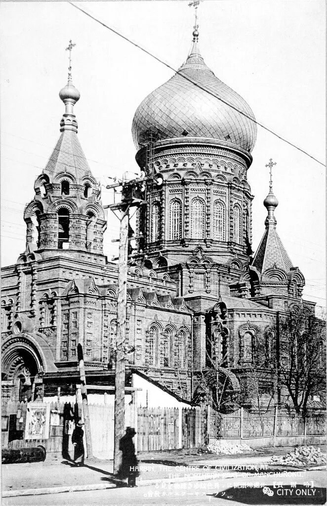 (旧时的圣索菲亚大教堂-曾经是哈尔滨的中心地带)▼