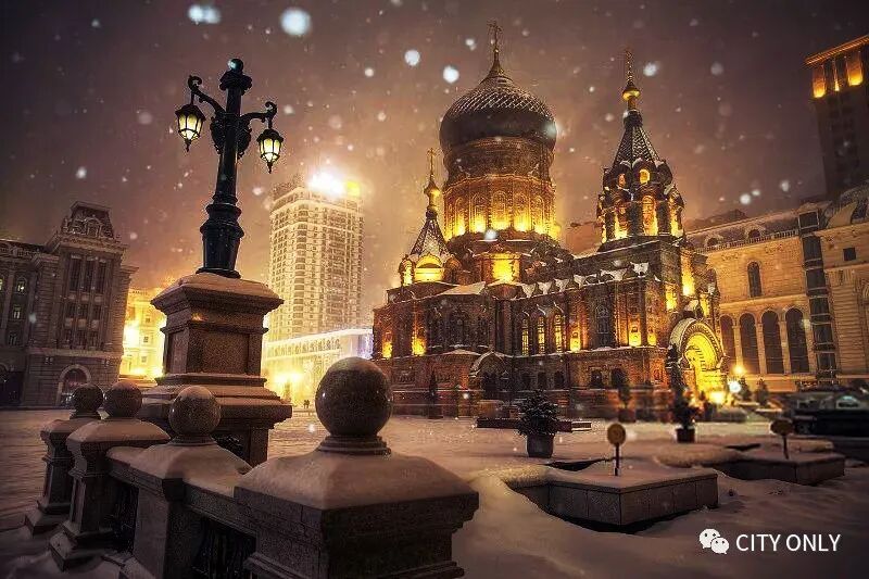 在漫天的鹅毛大雪中和心爱的人漫步在安静的伴着昏黄灯光的中央大街...