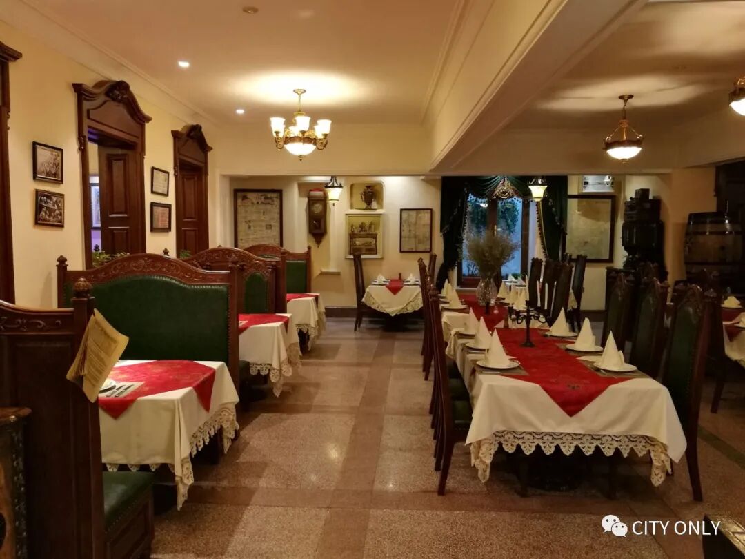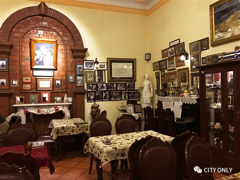 环境接近满分的俄式咖啡厅,小小的一间客厅式餐厅充满着旧俄时代的回忆。角落有俄侨使用过的钢琴,墙上有许多哈尔滨旧照,俄侨年轻时候的素描肖像,还有一整柜的老式交卷相机。