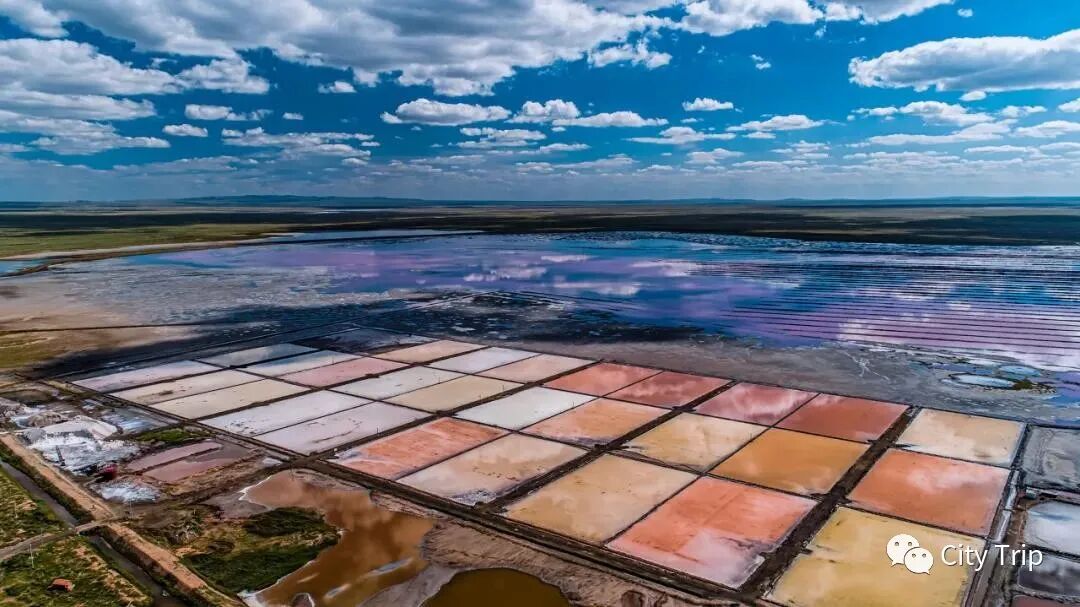 额吉淖尔是内蒙古三大盐场(另外两大盐场为阿拉善盟的吉兰泰盐湖/雅布赖盐湖)之一,盛产大青盐(天然卤水结晶生成/主要做为调味品)。早在金朝时期,官方就派遣盐吏管理此地的盐池,可见当时额吉淖尔就成为了重要的食盐产地。如今到达这里,依然可以看到晾晒盐巴的整齐盐池,大都呈现橙红色的色调。每年春夏季是产盐季节,晴好天气时,蓝天衬托,无人机航拍很是出效果。