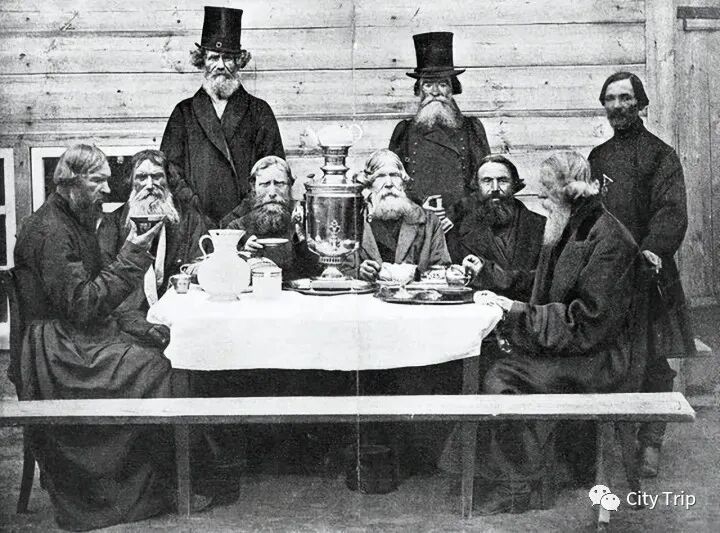 (20世纪初在西伯利亚运送砖茶的驼队)▼