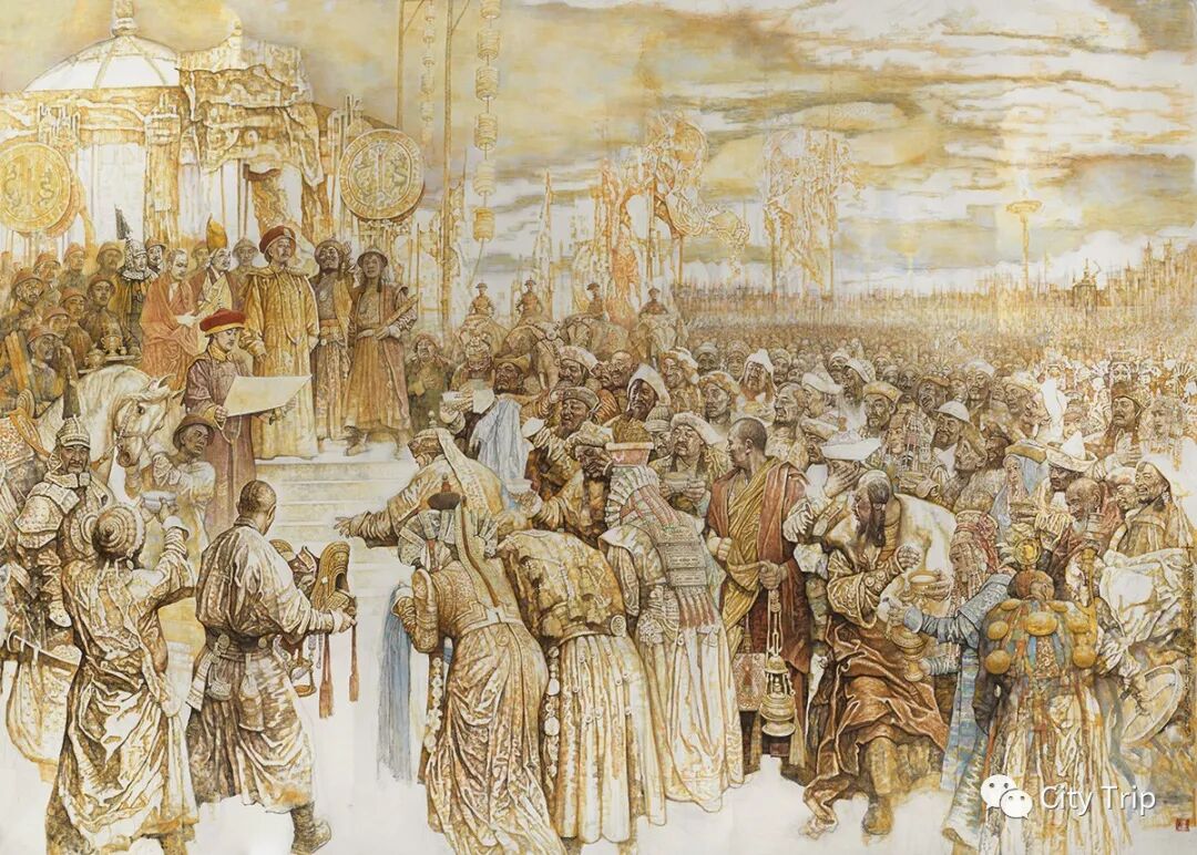 (描绘多伦诺尔会盟的画作《民族会盟--七溪会阅图》)▼