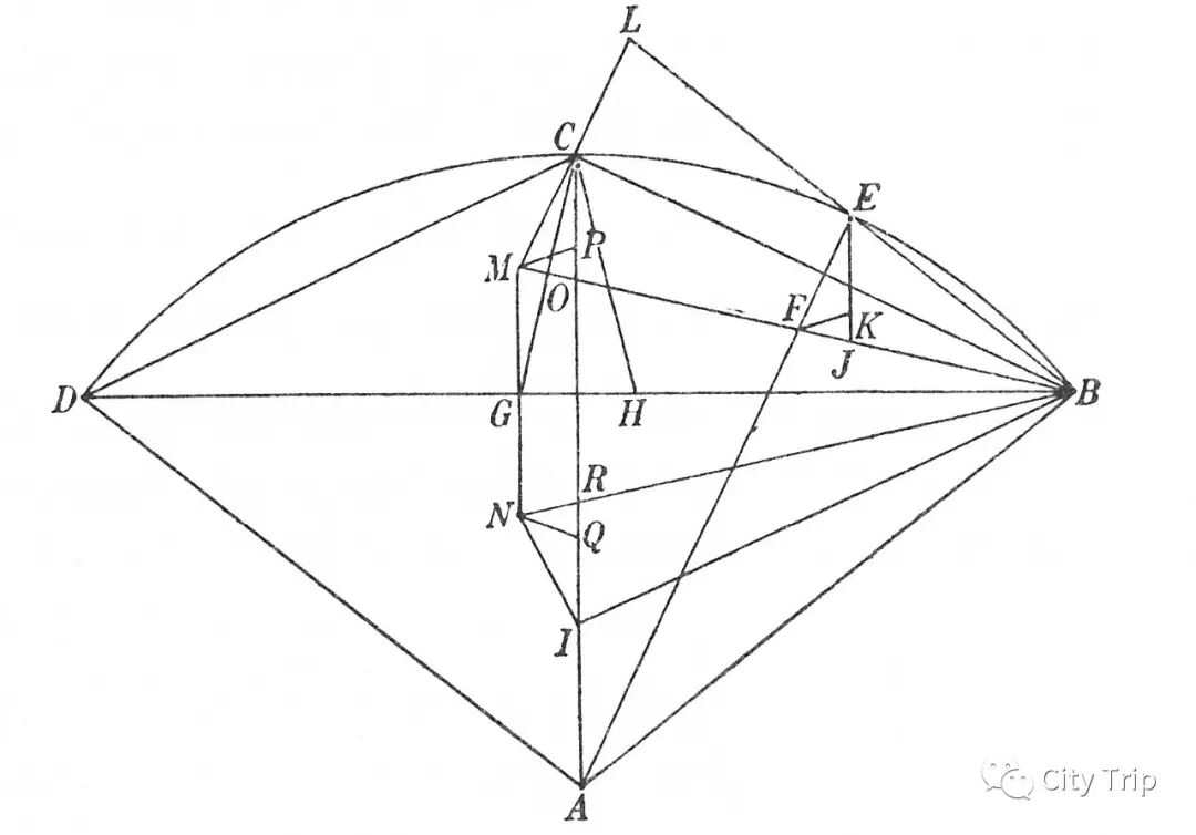 (明安图所著的《割圜密率捷法》中分弧通弦率数求全弧通弦率图解/一弦二矢割圆连比例图)▼