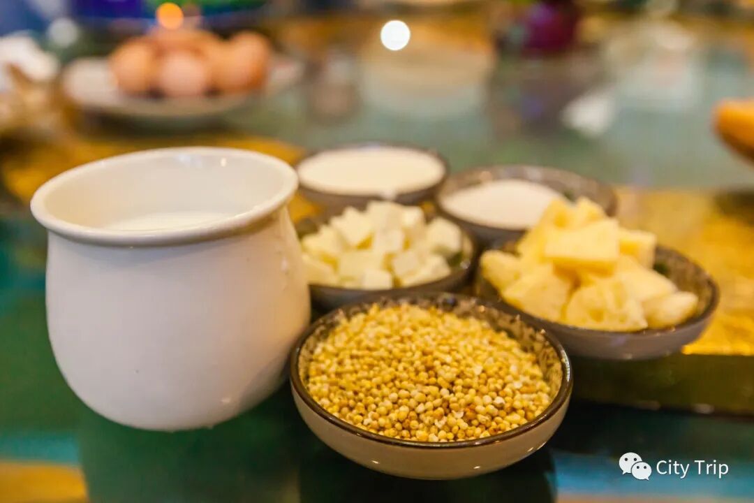 (在内蒙/早餐就是肉和各种奶制品/奶茶绝配必须要喝...)▼