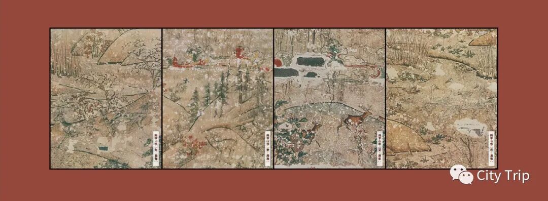 (辽庆陵中室四壁画《四季山水图》/描绘山川风貌与四季景象/象征帝王“四时捺钵”的游幸之地)▼